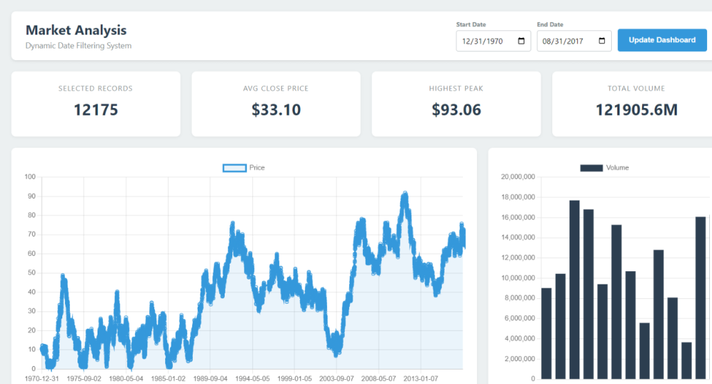 The most critical requirement was the Dynamic Date Filter. Since Nucleon BI Studio handles the data binding, I needed a JavaScript layer to parse that data and filter it on the client side without refreshing the page.